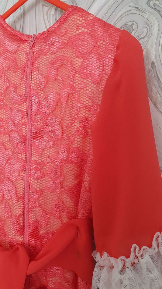 Red velvet set. Long sleeves, short blazer and pencil skirt.