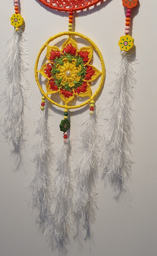Spring magic - crocheted floral dreamcatcher.