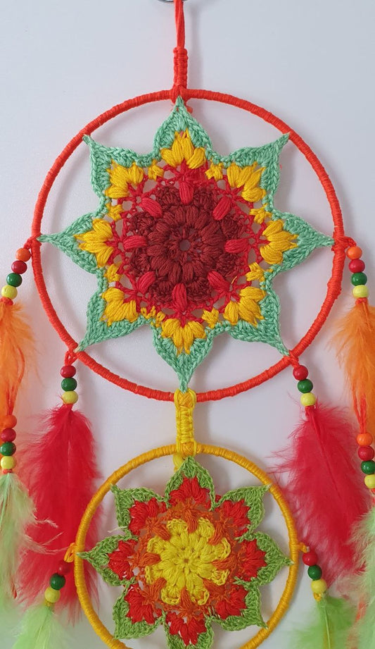 Tricolor Spirit Dreamcatcher – Crochet Stars & Feather Flow