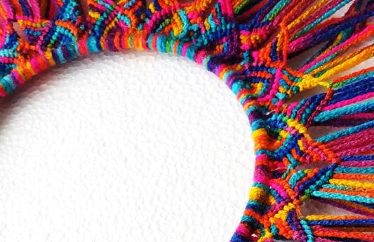 Large, colorful, celtic style macrame dreamcatcher.