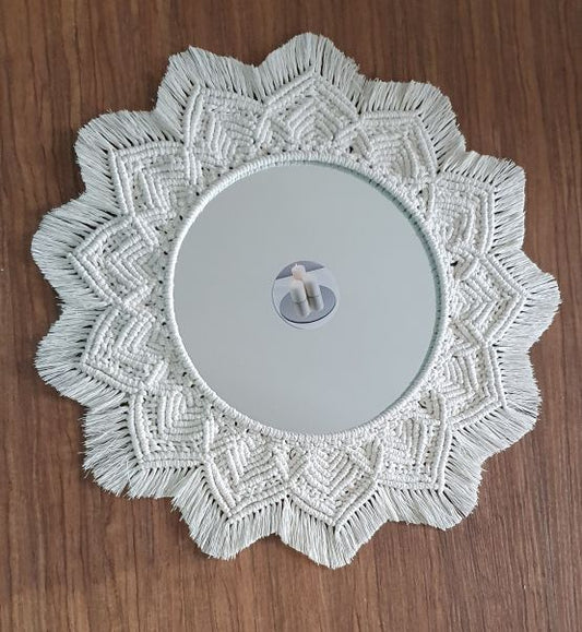 Cream Macramé Framed Round Mirror – Boho Elegance in Handmade Form